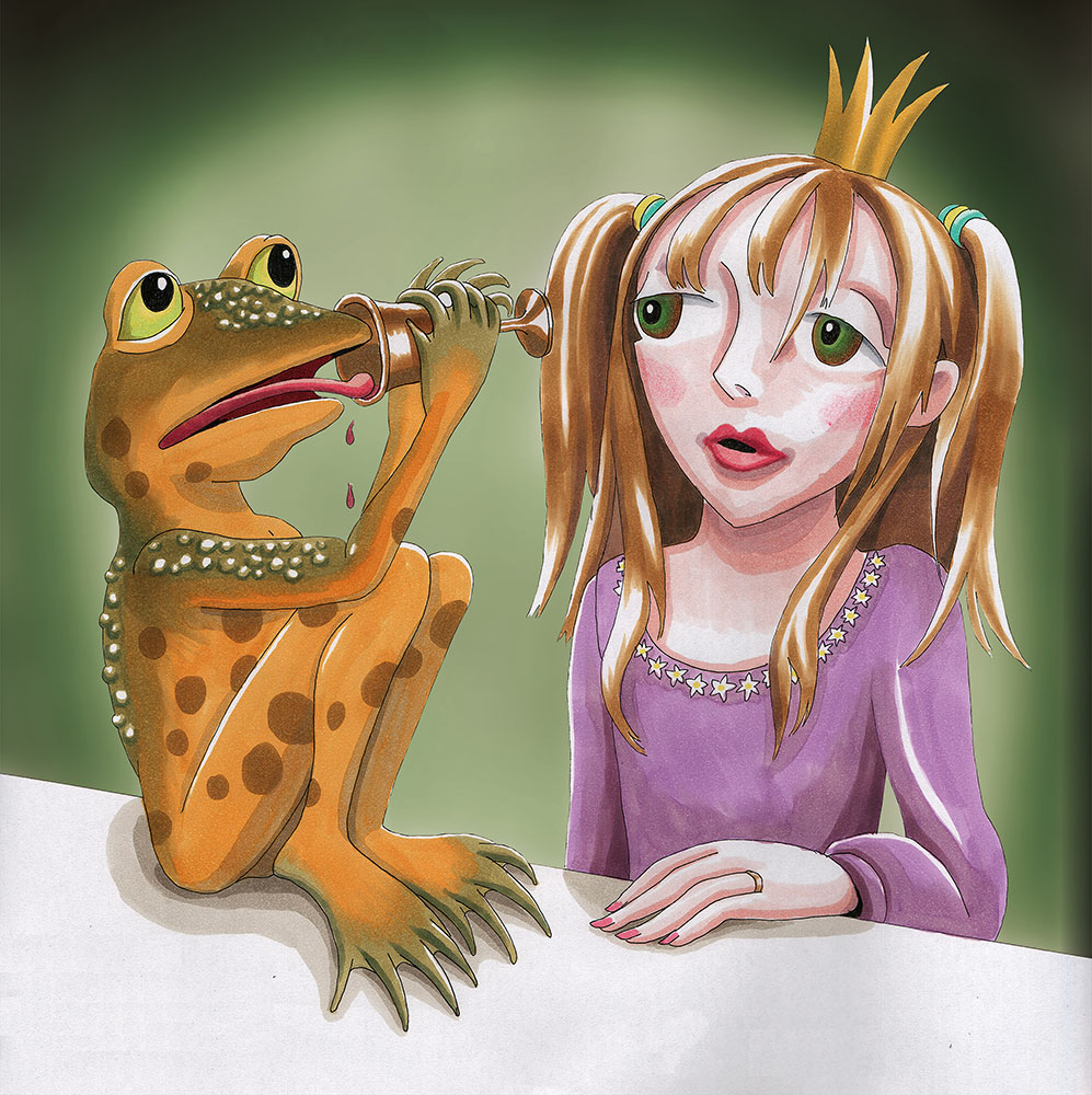 Frosch von ihrem Teller essen, aus ihrem Becher trinken und in ihrem